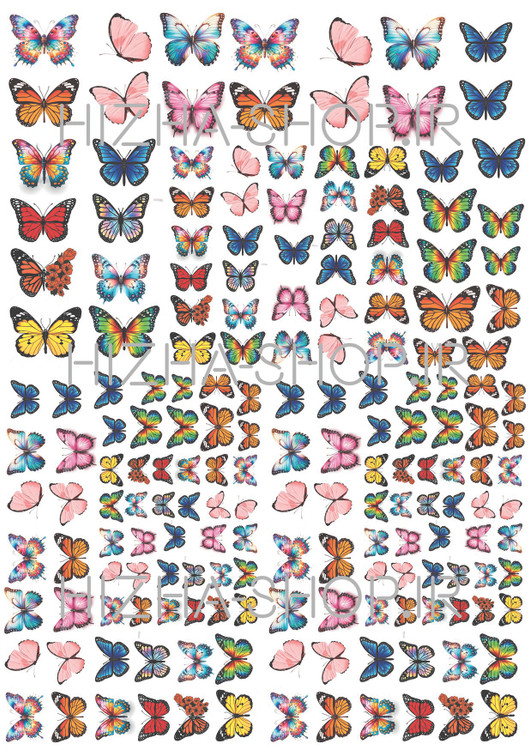 برچسب شفاف ( ترنسپرنت) پروانه رنگی میکس مخصوص کار با رزین