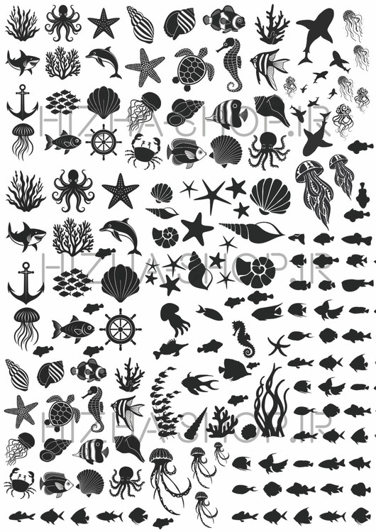 برچسب شفاف یا طلق برچسبی ترنسپرنت موجودات دریایی مشکی
