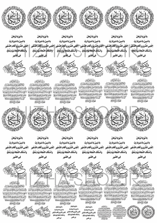 هر کدام از آیات به صورت جدا گانه در سایز مورد نظر شما قابل سفارش میباشند.