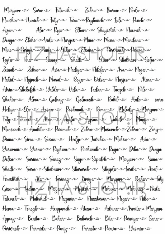 برچسب ترنسپرنت ( شفاف) اسامی دخترانه قلب دار
